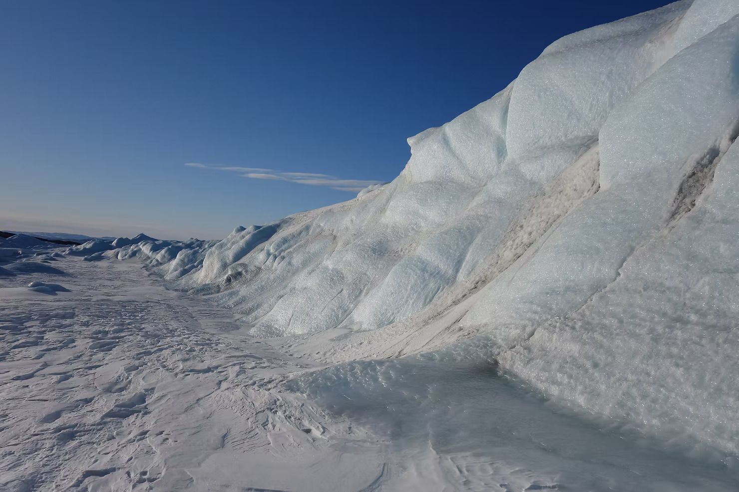 The climate conditions in April meant that the Ice Cap was still completely frozen, but Karsten lead us to areas where lakes and waterfalls would be flowing with crystal clear water in a month or two, and described the geographical features that results from the freezing and thawing process.