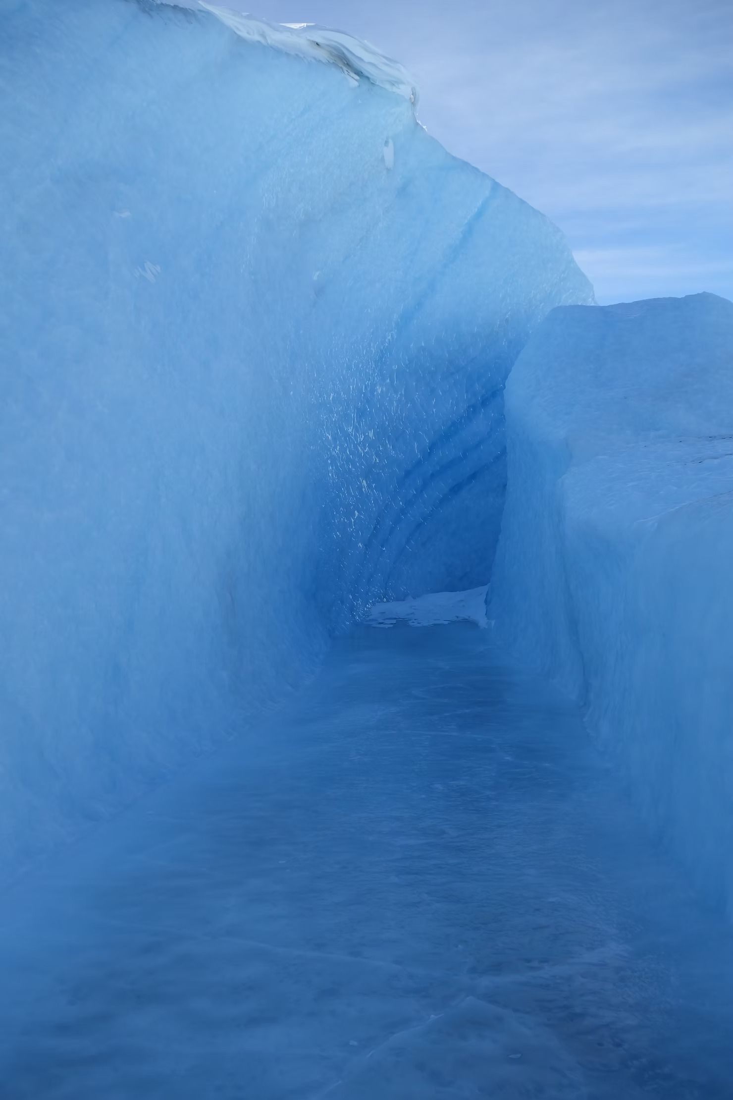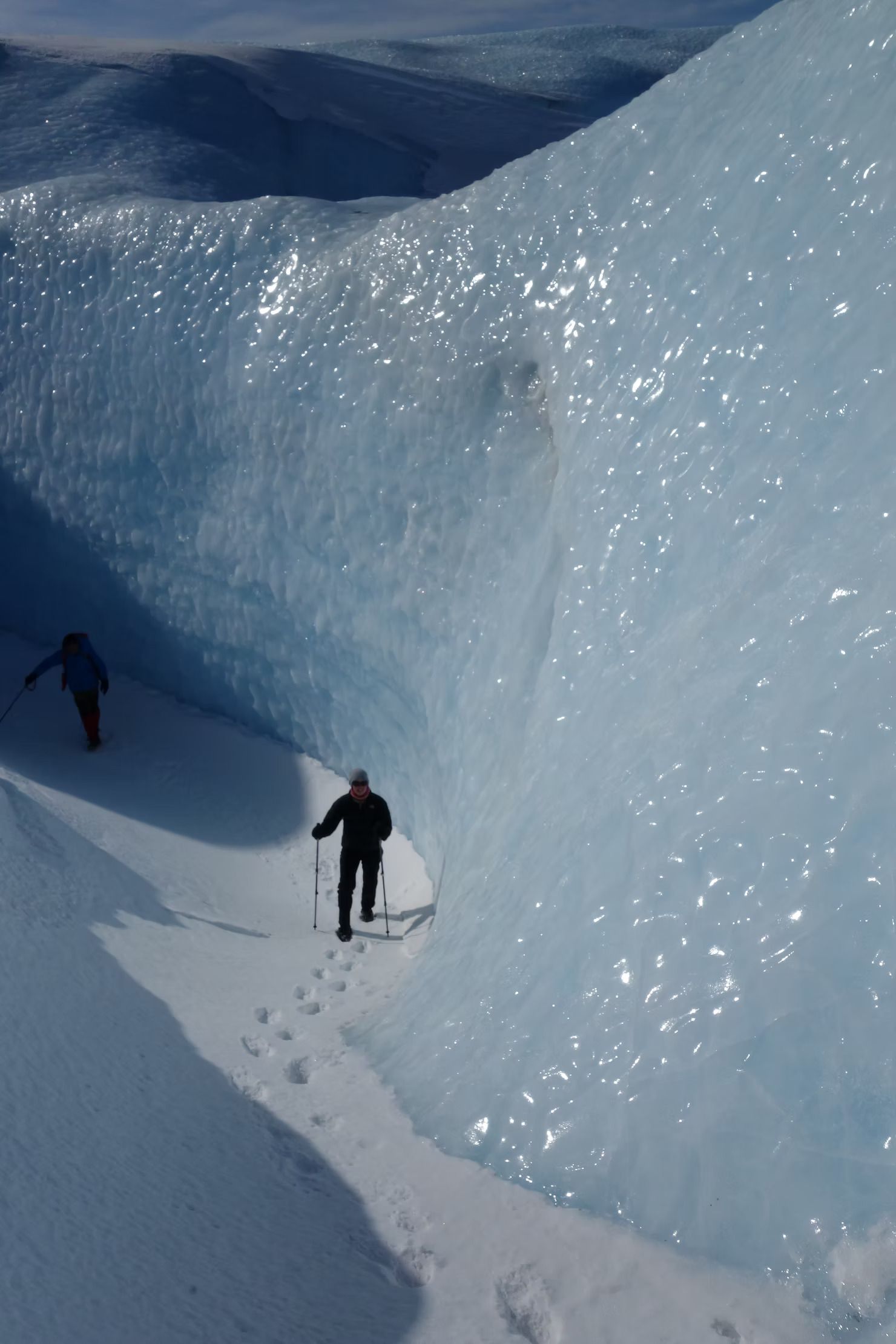 Jealous, that this was their office, I asked if they had a favourite area of the Ice Cap. Karsten lead us down to a beautiful frozen river that curved around the peaks. Touching the walls of ice that rose around us, they felt dry and like glass. I understood why it was a favoured location.