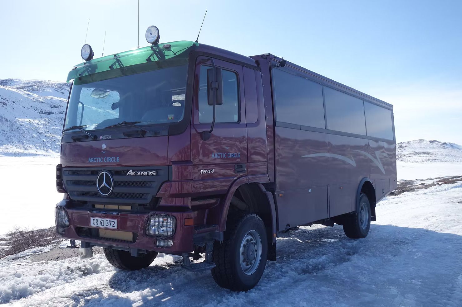 Embarking on to a substantial 4WD truck, our adventure started with our talented and experienced guides, Karsten and Peter, providing an amusing but incredibly informative narration along the 2 hour journey to the Ice Cap. Stopping at numerous points along the way to see up close a plane wreckage from World War II, wild Reindeers, wild Musk Ox and a enchanting frozen lake, the 40km road between Kangerlussuaq and the Ice Cap is fascinating. With only four people in our group and two guides, it was a very relaxed journey. Peter told us about how the access to the Ice Cap had only been made that easy in recent years. In the late 1990s Volkswagen wanted to test their vehicles on the ice to test how they responded to freezing conditions, thus they built the road to enable the access. The testing of vehicles never materialised but the road remained and enables Albatross Arctic Circle to organise these adventures on the ice.