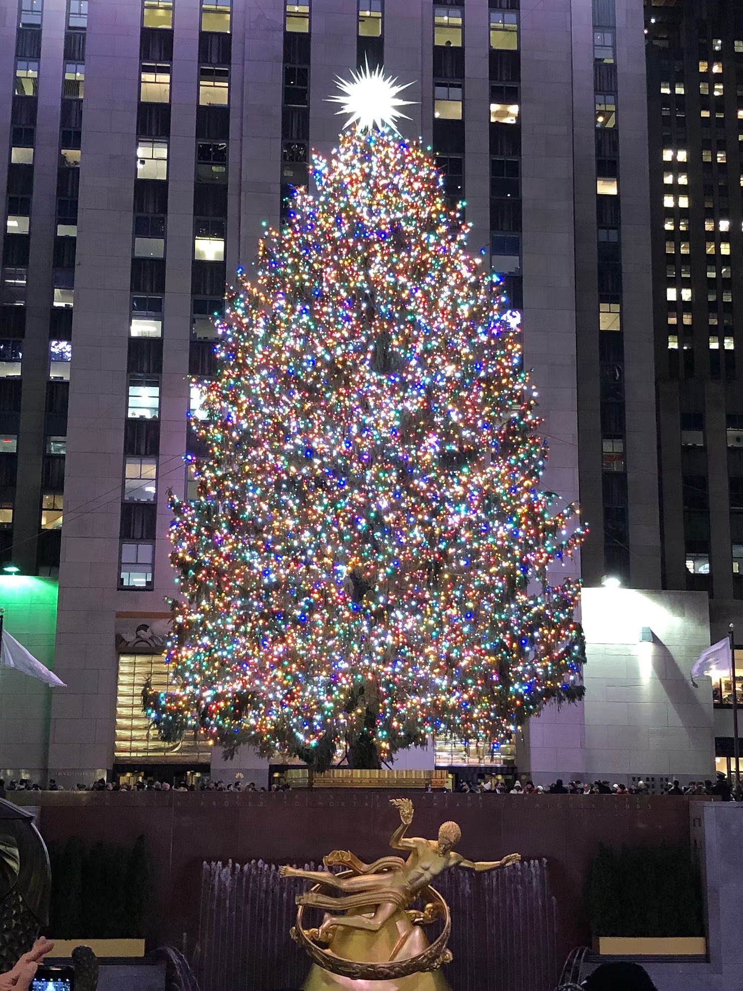 Turning 180 degrees from this spectacle, another awaited: The Rockefeller Centre Christmas Tree. The 72 foot tall Norway Spruce adorned with over 50,000 LEDs magnificently rose at the end of the walkway. As I stood in front of it, drinking in the atmosphere, I couldn’t believe that I was in central Manhattan. This stunning illumination, something I had always associated with NYC at Christmas, was real and I was there. I enjoyed that view until we once again succumbed to hunger.