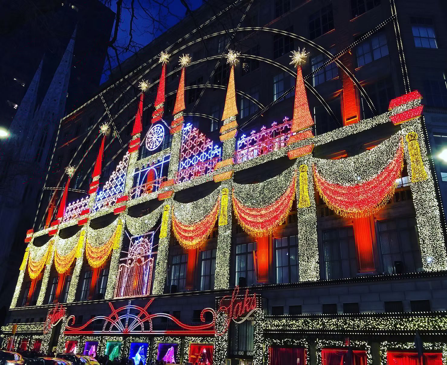 The hustle and bustle of Fifth Avenue felt welcoming with the festive spirit of the surrounding stores. We sauntered down to 34th Street where we turned right to visit Macy’s. Again, every Christmas movie set in NYC incorporates the Worlds largest Store in to it’s plot and I wanted to take in their elaborate window displays, explore their Holiday Store and possibly get a peek of Santa. I succeeded with two out of three, with the jolly red fellow being hidden away in the ticketed ‘Santaland’ experience on the top floor. As we exited the store at around 16:30, the sun was almost completely down, kick starting the second stage of our adventure: Christmas Lights!