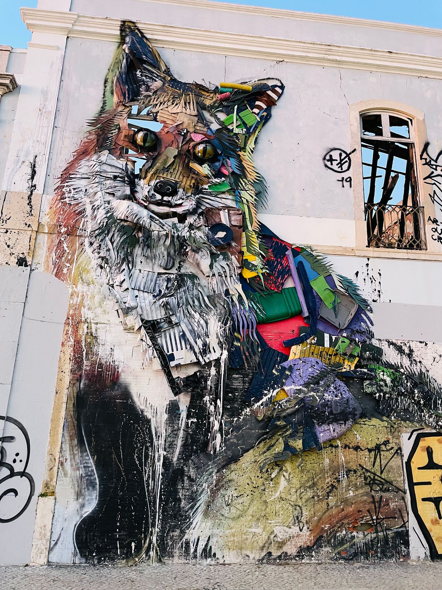 The black and white cobblestone streets of Lisbon are iconic. There is a tight, steep and picturesque network of alleys through the beautifully tiled buildings of the old city. To then cover some of the scenery in street art could be considered an outrage. There is a fair amount of graffiti in Lisbon that unfortunately does spoil some of the architectural beauty of the area, but there is also the work of many incredible street artists exhibited along the sweeping blank canvas of perimeter walls. The talent of local artists is showcased with a diverse range of work, many with political or environmental messages. Lisbon is the perfect city for exploring on foot, I covered 56 miles in four days as I decided to say no to the public transport. Here are some of the amazing pieces of street art that I found along the way.