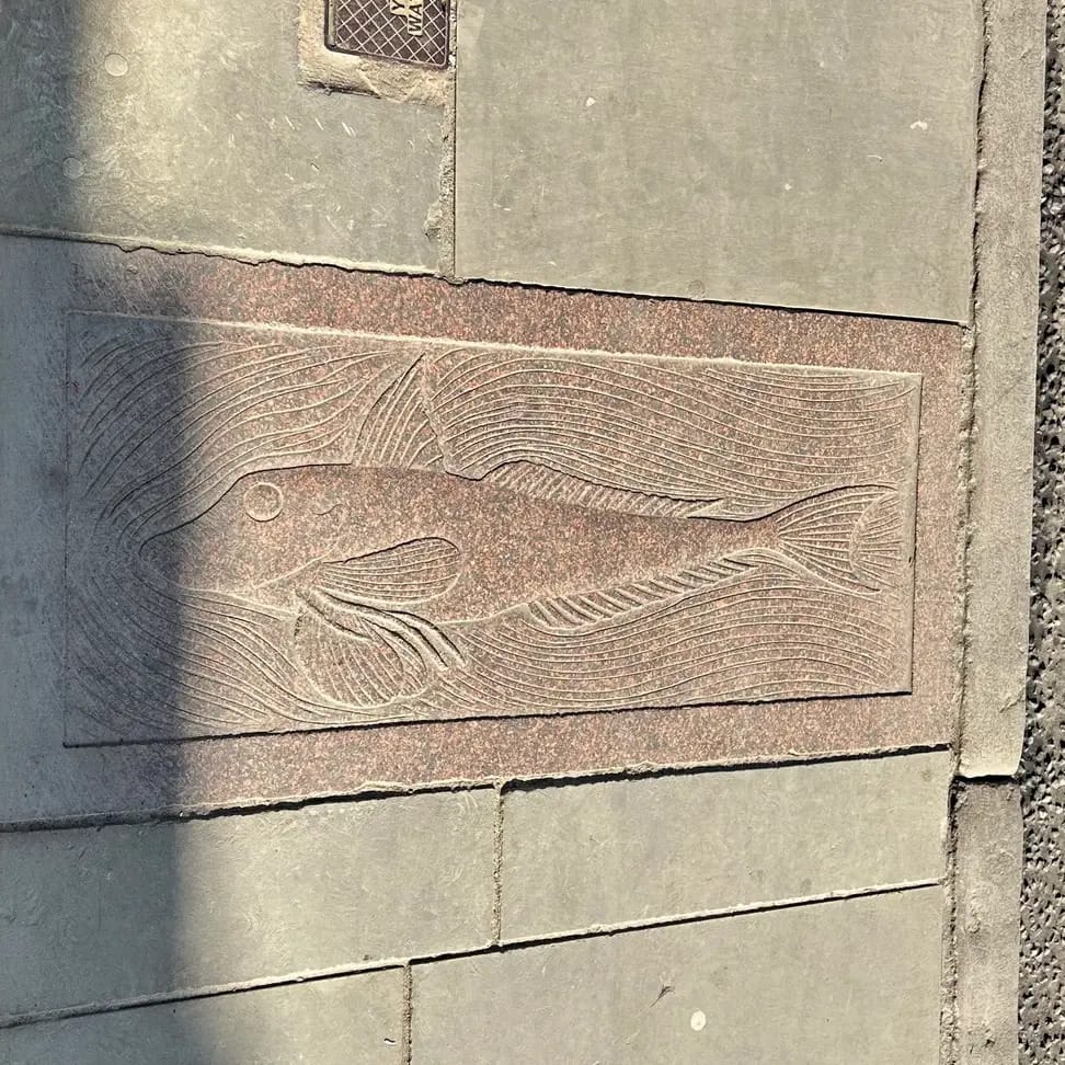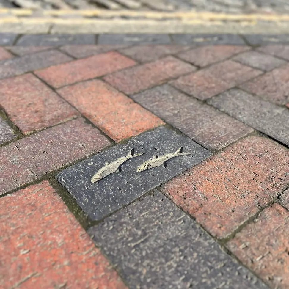 The public works of art are by the sculptor Gordon Young who is famous for his pavement sculptures (including the comedy carpet in Blackpool). This trail was launched in 1992 but all of the art stands up to time and they are visible. The only disclaimer here is that if there are any public works happening in the area and the pavement is disturbed in the process, then it is unlikely that you will be able to access those particular fish.